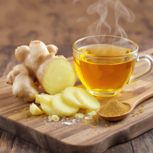 - Drink ginger tea (steep fresh ginger slices in hot water).